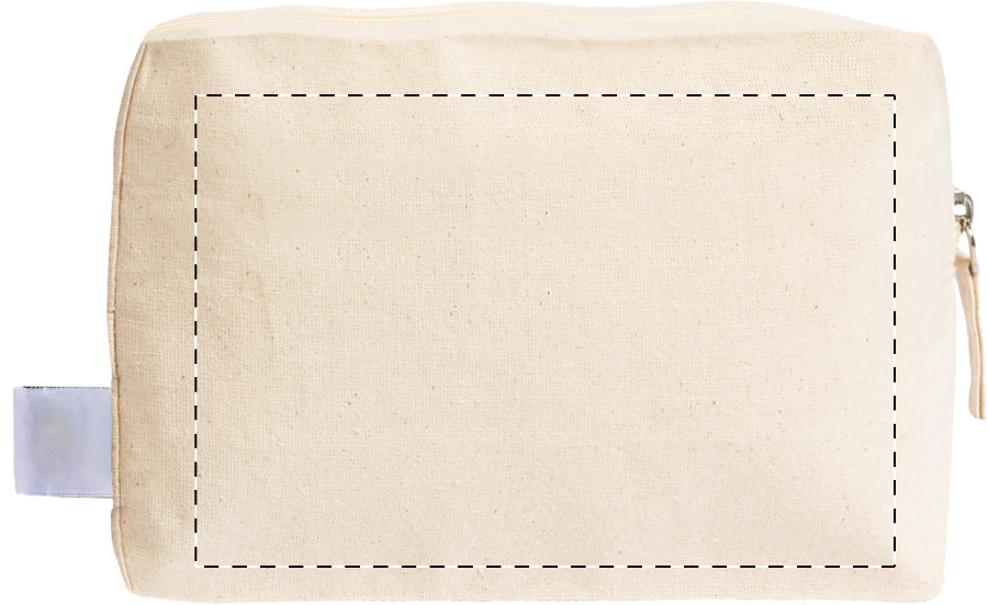 Trousse per cosmetici in 100% cotone equosolidale da 180 g/m² con cerniera ed etichetta Fairtrade.